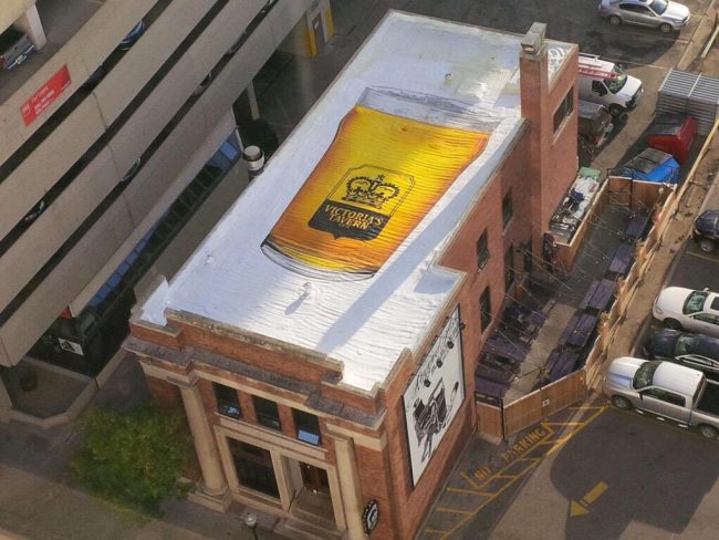 Victoria’s Tavern Rooftop Mural Advertisement – 40′ Pint Glass – Regina, SK