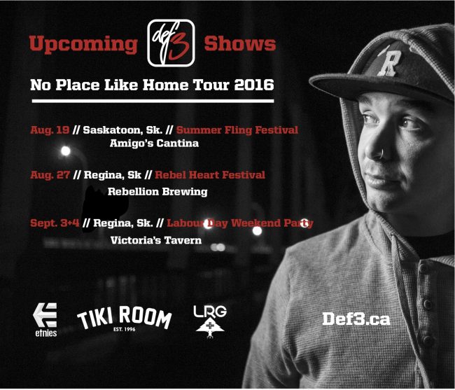 It’s been a crazy summer of festivals and finishing up this new album. That being said I’m really excited to be coming back to home turf to do these next string of Saskatchewan Shows! Hope to see all the homies out. Please spread the word!