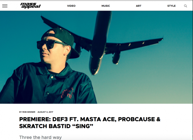 Shoutout to Mass Appeal for premiering our new song “Sing” feat. Masta Ace, ProbCause & Skratch Bastid produced by Late Night Radio. For those who still appreciate quality content and integrity in hip hop culture this was always one of my favorite magazines and blogs to check for graffiti and music in and on so…