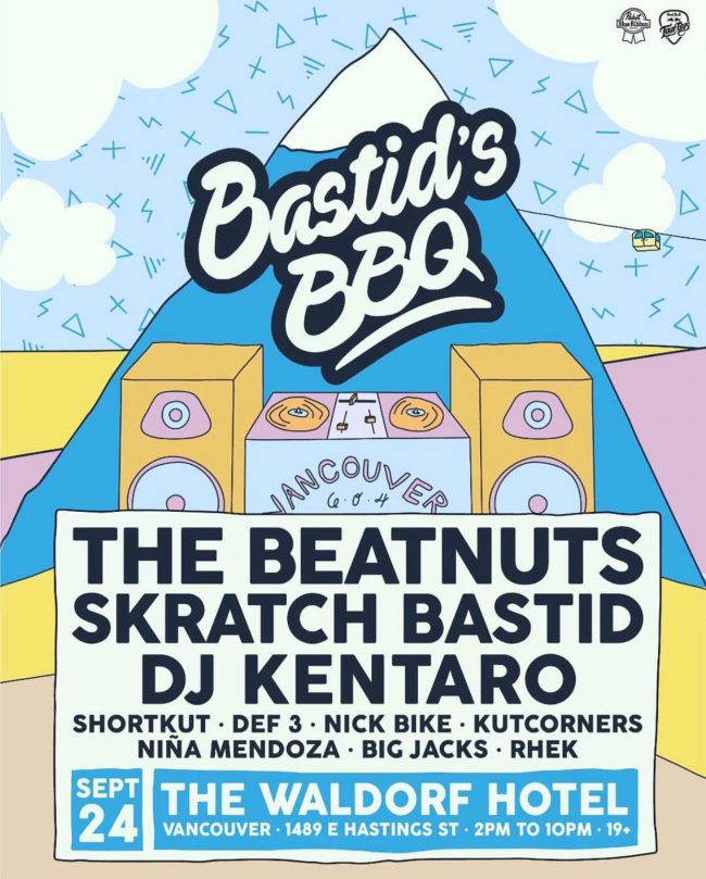 I am stoked to announce that I will be performing in Vancouver at one of my all time favourite events: Bastid’s BBQ!!!! September 24th at The Waldorf Hotel. Also performing: Skratch Bastid (duhhhh) The Beatnuts DJ Kentaro Shortkut Nick Bike Kurtcorners Niña Mendoza Big Jacks RHEK In addition to all those great artists…